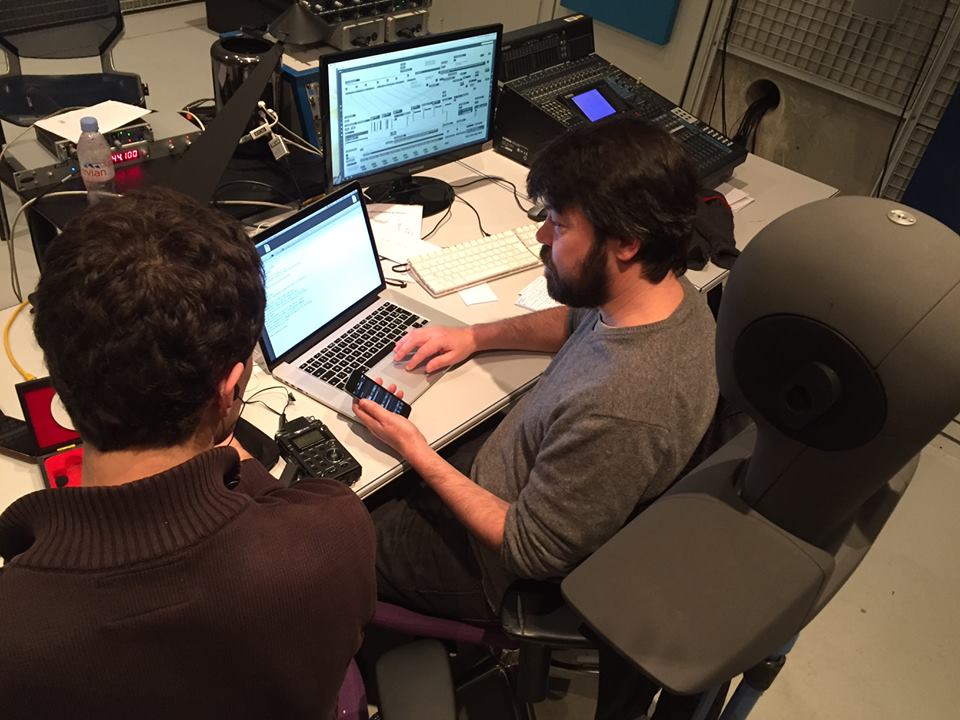 The installation has been shown at the opening of the Vertigo project and the Forum Workshops at Ircam in March 2017. It uses the same technology as the ProXoMix experience relying on Bluetooth beaconing to estimate the approximate distance between the participants.