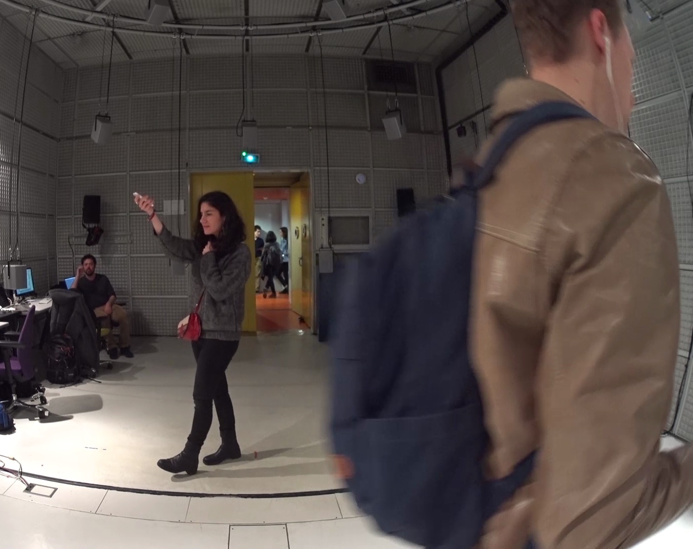The originality of the installation lies in the entanglement of social and musical affordances as well as in the collaborative embodiment of the notion of (re)-mixing it creates. In the installation, space becomes an interface. But other than in geolocated sound applications, the space in ProXoMix is not predefined. It is structured by – and actually unfolds through – the spatial relationships (i.e. distance and relative orientation) between the participants.