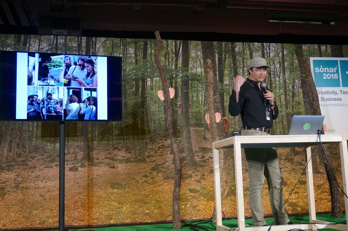 CoSiMa has participated at the Sonar+D international conference on creativity and technology of the Sonar music festival in Barcelone with a Sonar Innovation Challenge. A team of 5 musicians, designers, and developers – formed over a month before the event – has worked two and a half days on a music application dedicated to a public interacting collaboratively through their smartphones. The web-based application has been developed with the Soundworks framework.